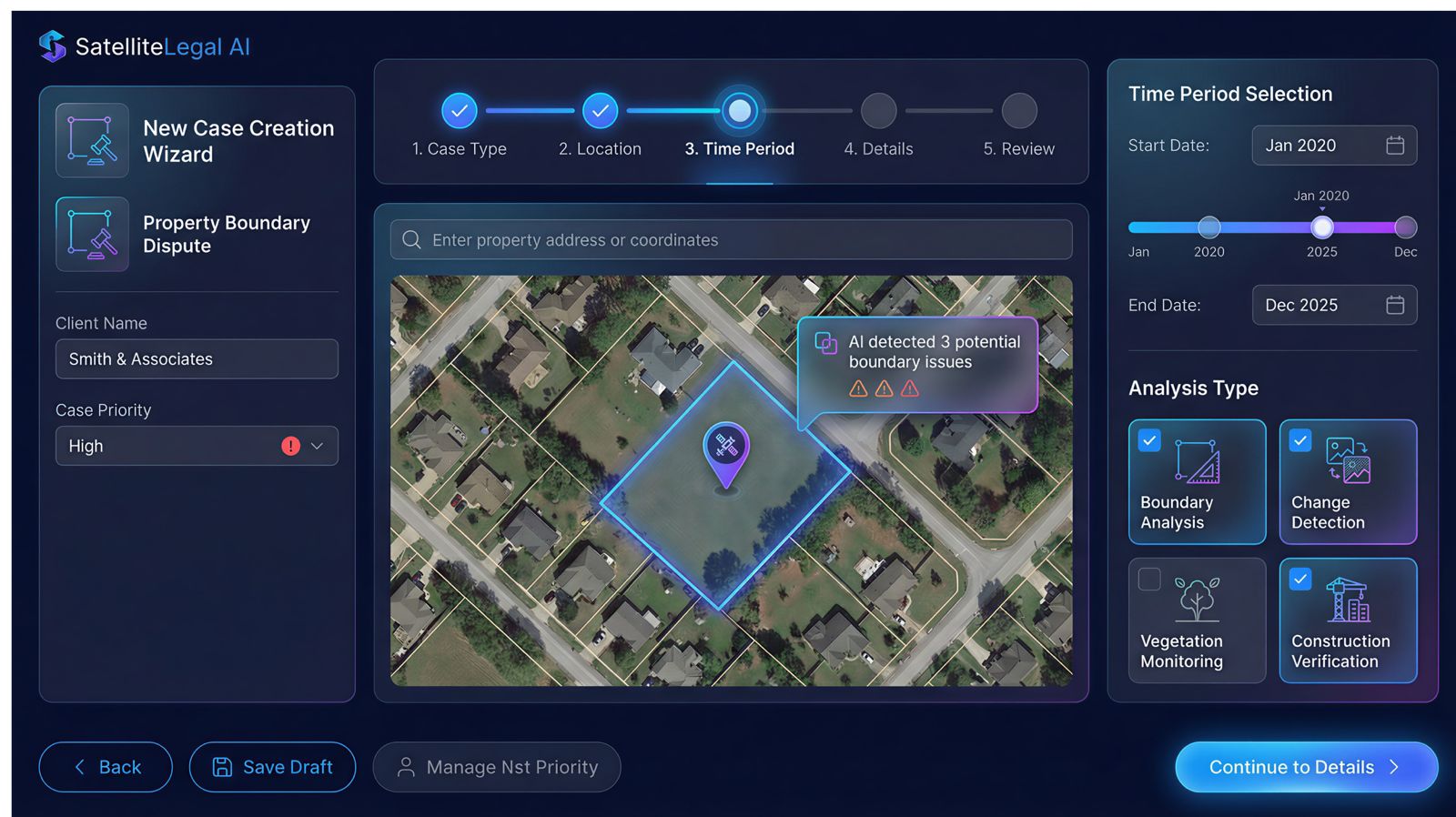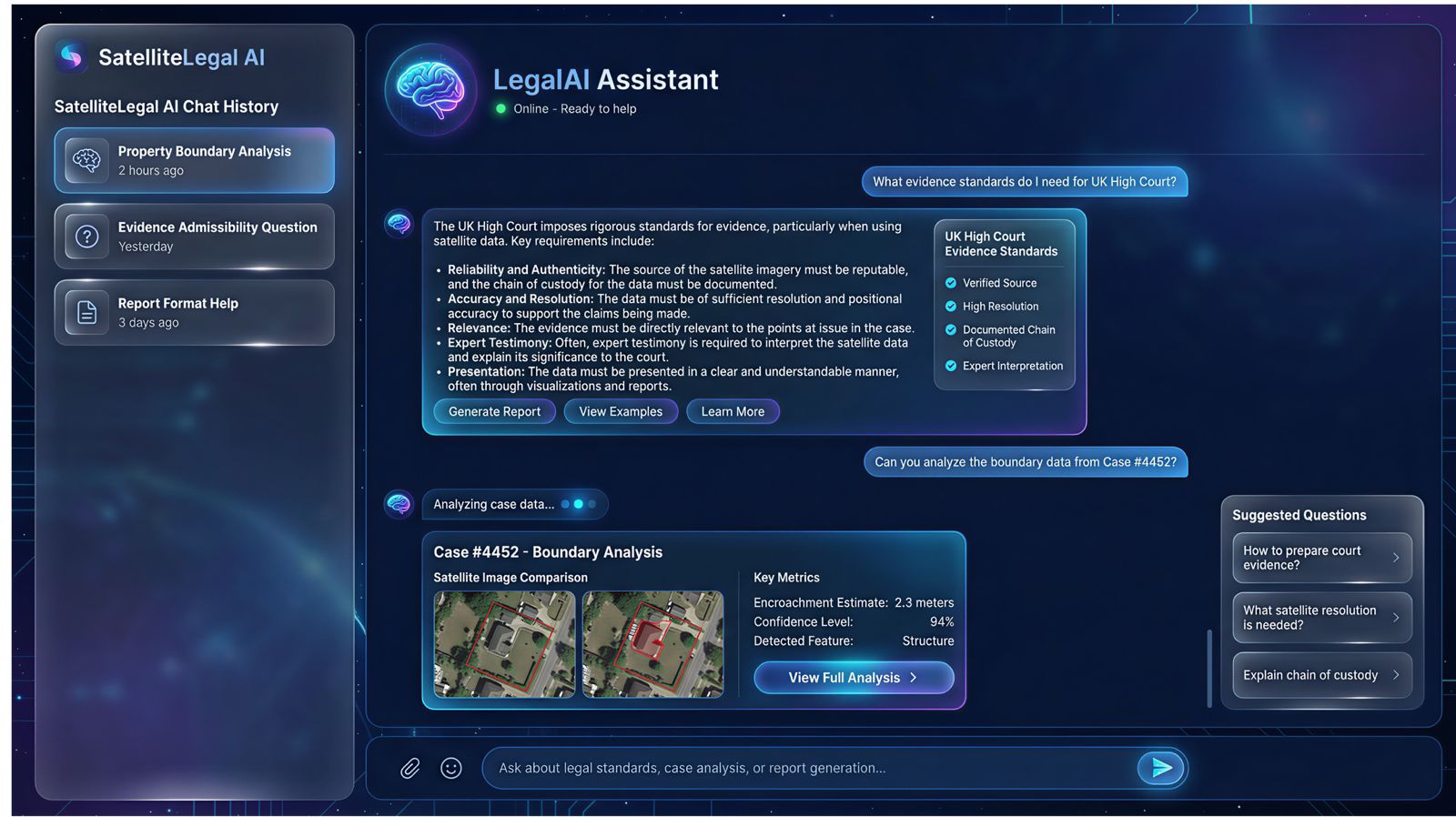 The world's first AI-powered platform that converts satellite data into legally admissible evidence for property disputes, environmental claims, and construction verification.